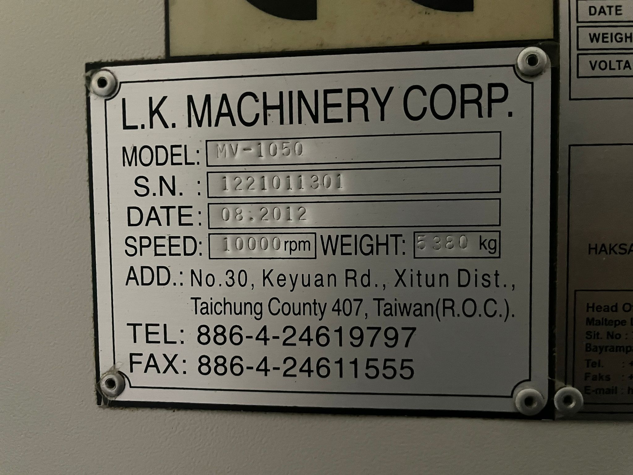 Tezgah Ağırlığı : 5.380 kg